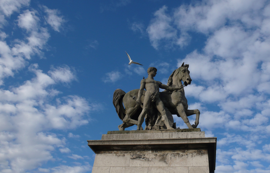 Previous Image Next Image Horse, man, and gull A gull soars above this equestrian statue in Paris. A gull soars above this equestrian statue in Paris.