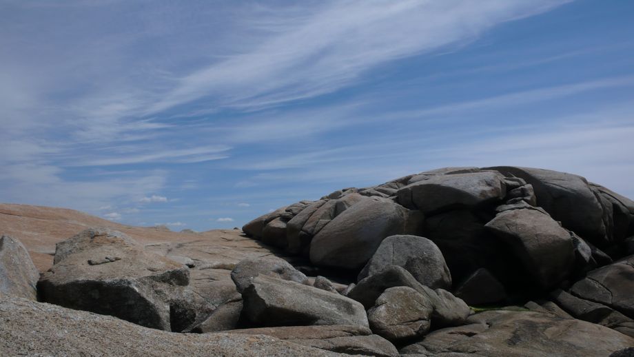 Rocks undulate against the sky near Cranberry Cove, Nova Scotia.