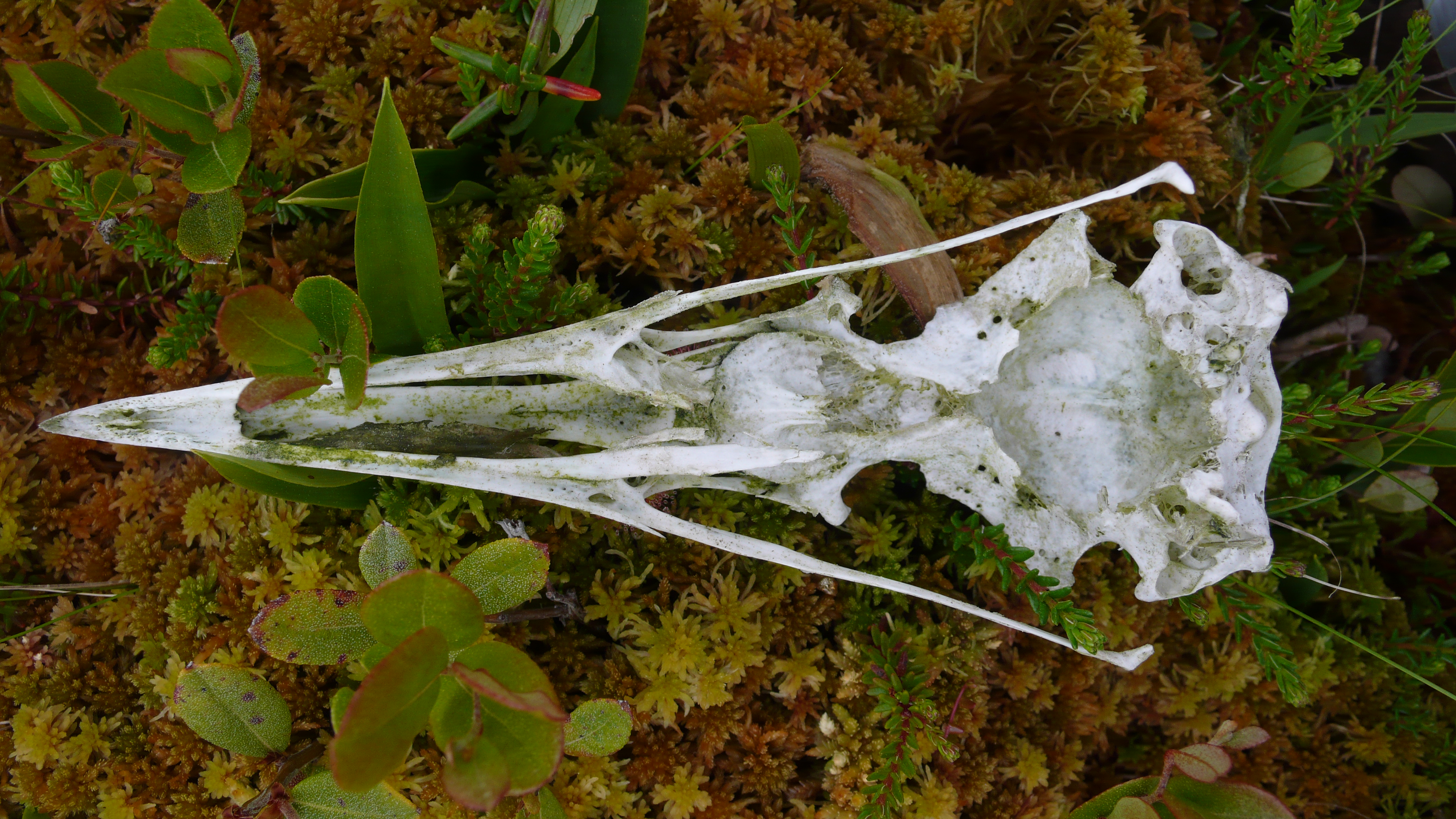 Next Image Skull on sphagnum Found in a sphagnum bog in Queens County, Nova Scotia. Found in a sphagnum bog in Queens County, Nova Scotia.